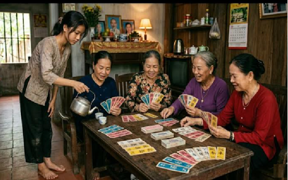 Má tôi tuy là cháu, nhưng mỗi ngày phải giúp việc nhà, giăng mùng, nấu cơm, quét nhà, rửa chén…đủ thứ việc, kể cả ngồi thế, khi tụ tứ sắc có người tới trễ hay bận việc. Ba tôi thì cứ tưởng má tôi con gái nhà giàu nên ông nào dám mơ!