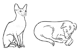 vài chú chó, mèo hoang chờ xin cơm